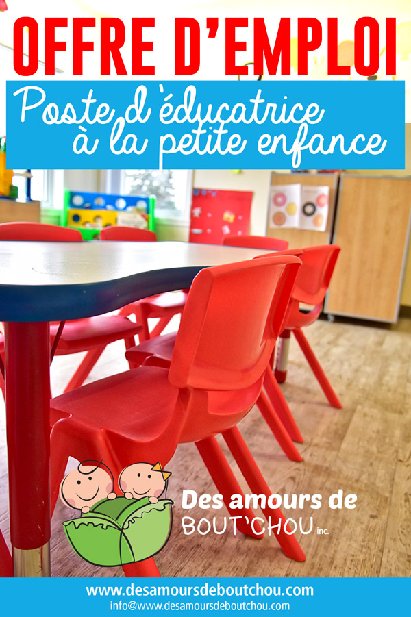 La garderie « Des amours de Bout’Chou » est à la recherche d’éducateurs et d’éducatrices formés.